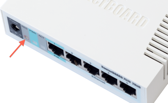 Now keep the reset button down while plugging the power cable back in. The LEDs will start blinking wait until all the LEDs are turned off (exception is the Lan1/Port1 LED and Power LED) let go of the reset button once this has happened, this will reboot you RB into Etherboot mode, you will hear a beep sound that will indicate it has rebooted.