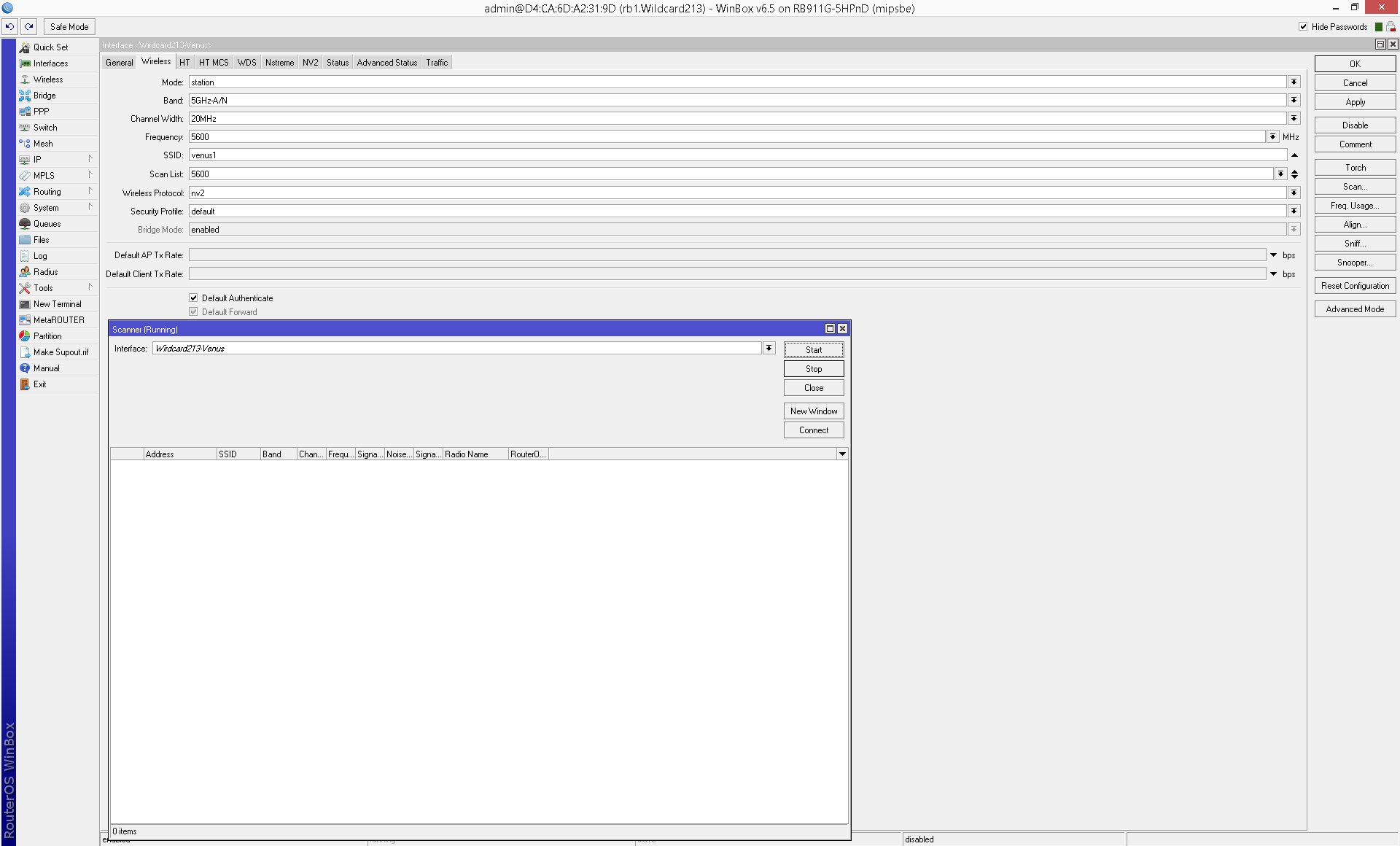 The frequency is 5600, ssid: venus1, wireless protocol nv2