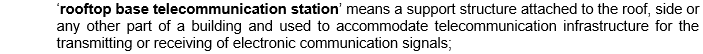 ‘rooftop base telecommunication station’ means a support structure attached to the roof, side or