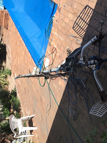 Two of the smaller grids kinda of got crushed when I lowered the tower, though I got a spare in the garage with a tone of spare items from guy wires, brackets, cables, etc which I will give away as well.
