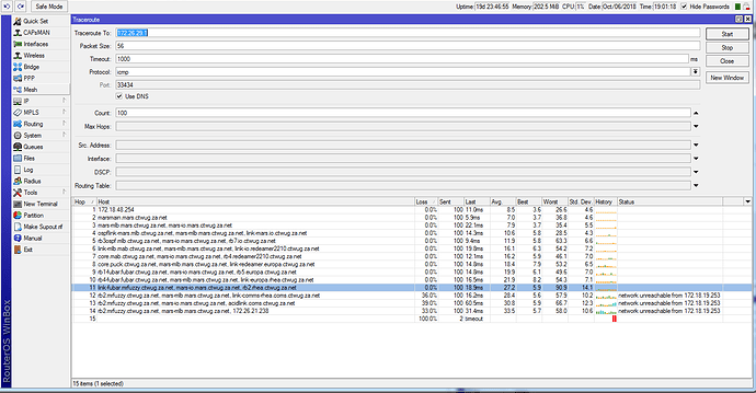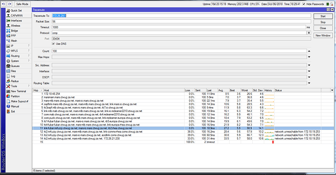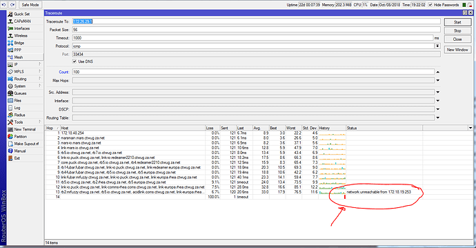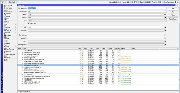 When you get multiple hosts on the same line of a traceroute it means the route changed while you were tracing. It’s not clear which link that was. Sorry.