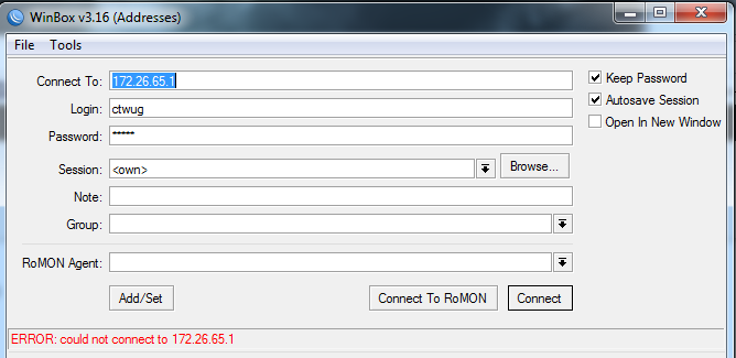 Unable to log into RB at 172.26.25.1 Puck with ctwug account . . .