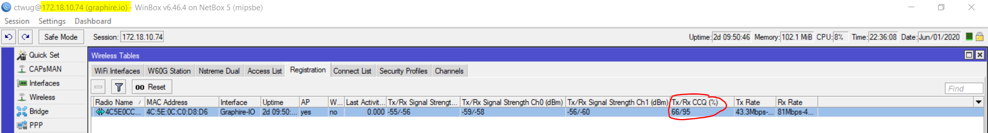 We’ve been experiencing severe latency issues via this link for a while now - Been monitoring it in the hope that it’s just temporary . . . but these issues remains though . . . on either sides. While the signal remains stable and below -60dBm . . , the CCQ’s seems to be fluctuating excessively - dropping right down into 40% range at times. Some fine tuning could possibly resolve . . . May I please draw attention to this - Assistance in resolving would be highly appreciated - Thank You in advance . . .