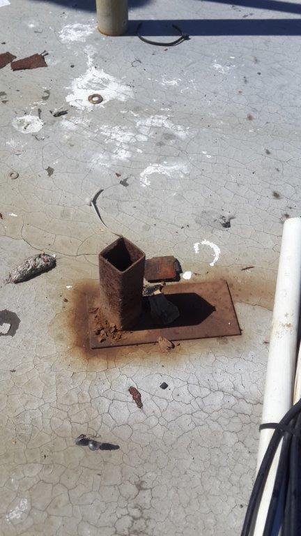 The 3 bolts mounting the mast to roof is also rusted.
