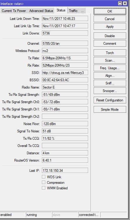 It’ll help if you give more info, connection stats CCQ signal strength etc