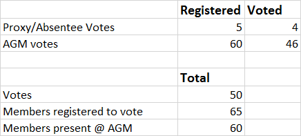 Election – Thanks to our 3 years in a row election officer @gordon808 the election went very smooth 50 people voted.