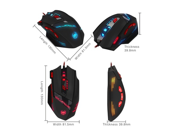 ZELOTES T-90 8 Key Wired USB Optical Game Mouse 9200DPI with LED Backlit Display.