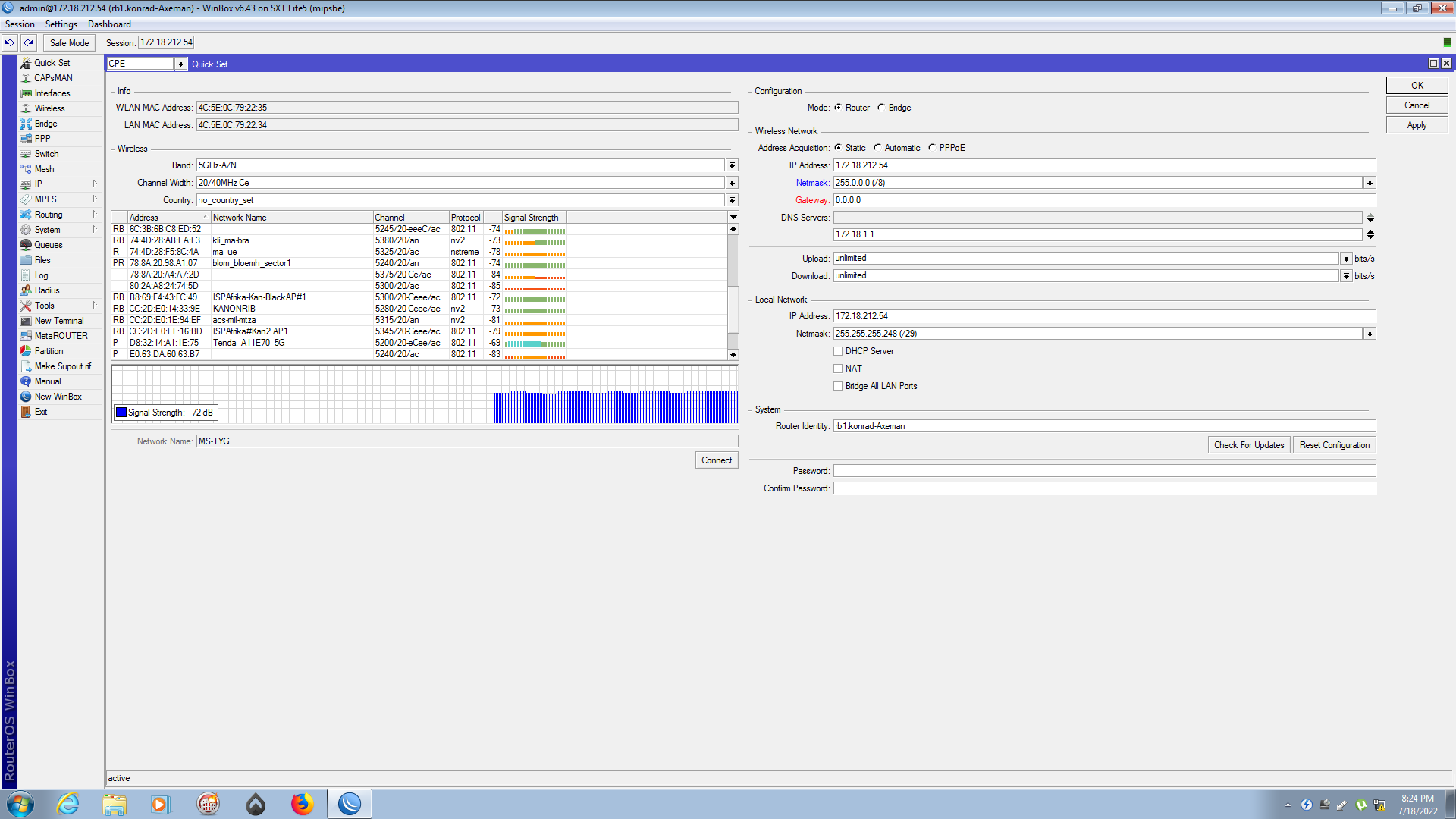 [hi need help in reconnecting to wug have a sxt 5ghz on a pole.]