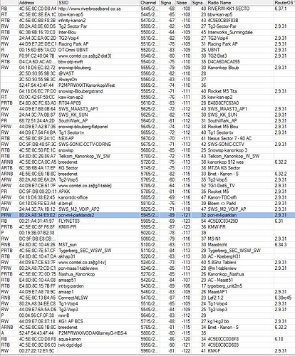 https://wind.ctwug.za.net/index.php/nodes?node=15910 - click on ‘List Topology to all AP nodes’, this will give you a rough but by no means 100% accurate guide of where to scan to with the test kit. A full 360 degree scan is recommended.