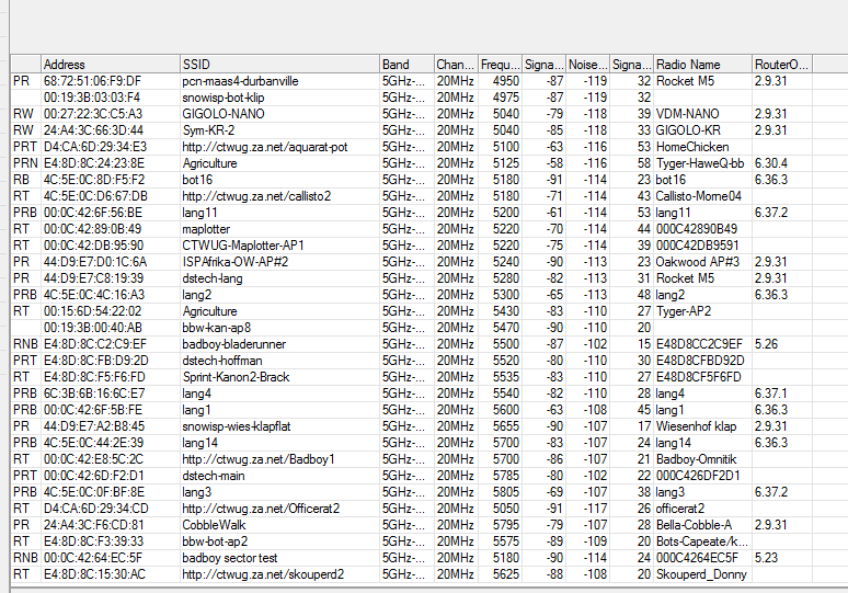 Ek kry baie goeie throughput met 2.4 tans. (2 x Powerbeam M2). Ek het eers met my Powerbeam m2 aan 'n 2.4 grid connect. Toe ons die grid met nog 'n Powerbeam upgrade, sien ons dat terwyl die grid op Sselmrah se dak gele het en in 'n heel ander rigting gewys het (actually grond toe), was daar steeds 'n konneksie. Swak, maar wel daar.