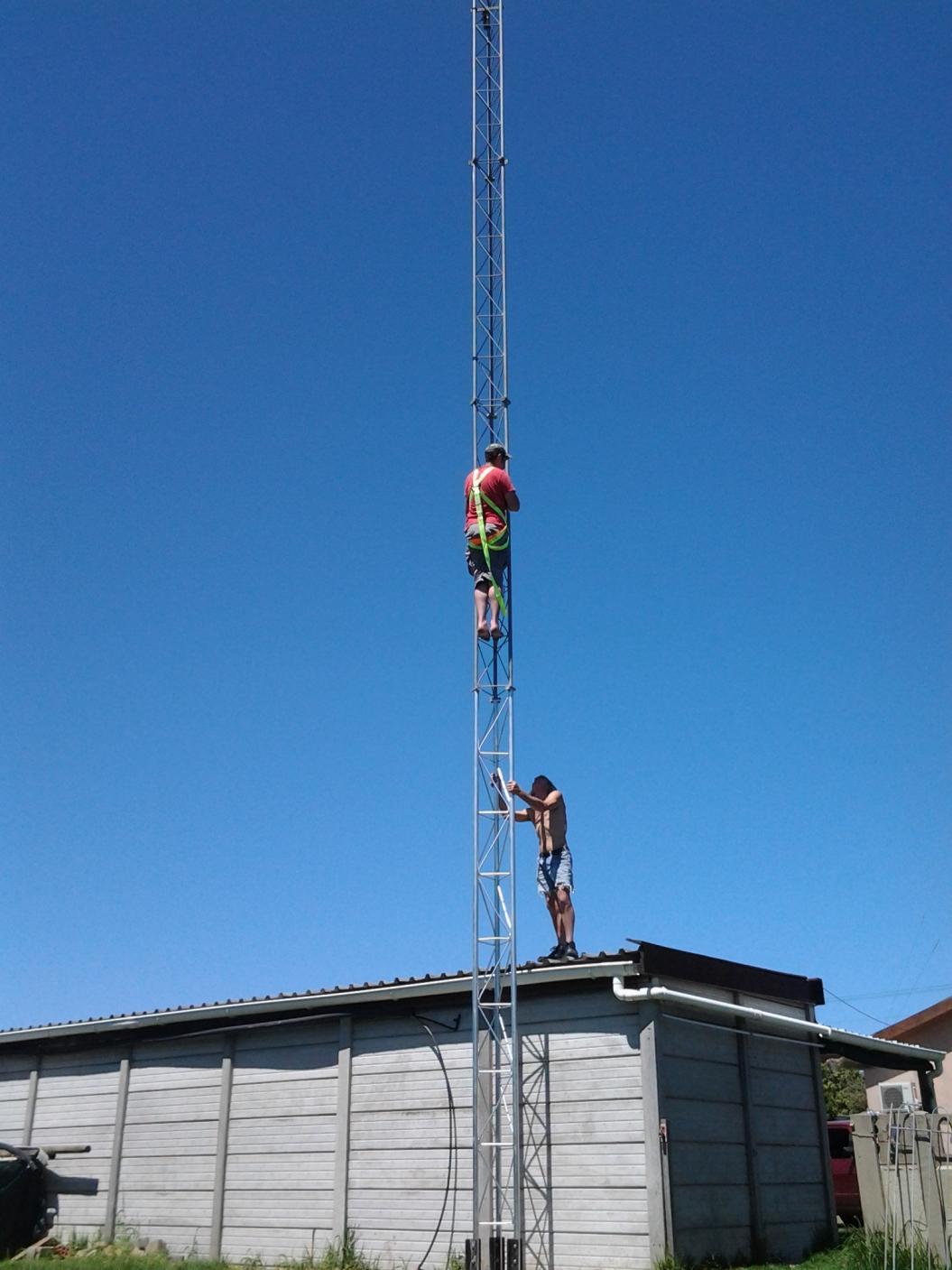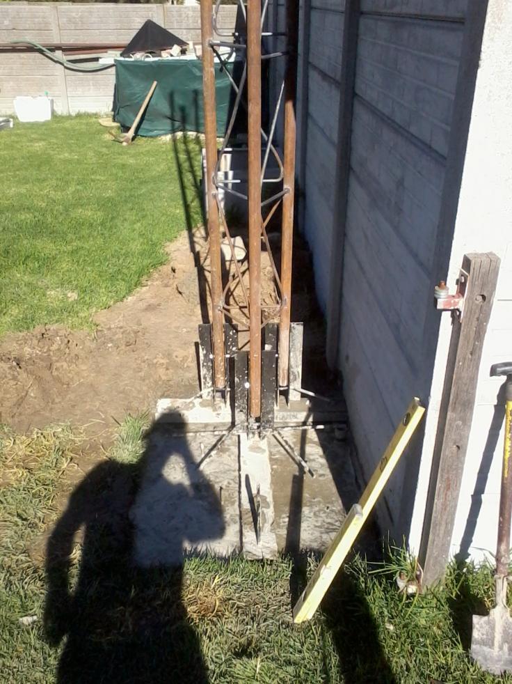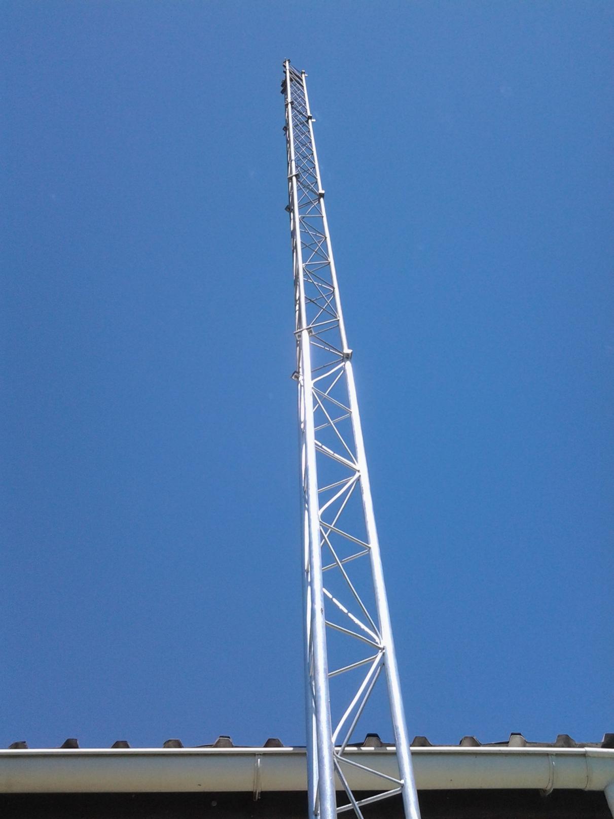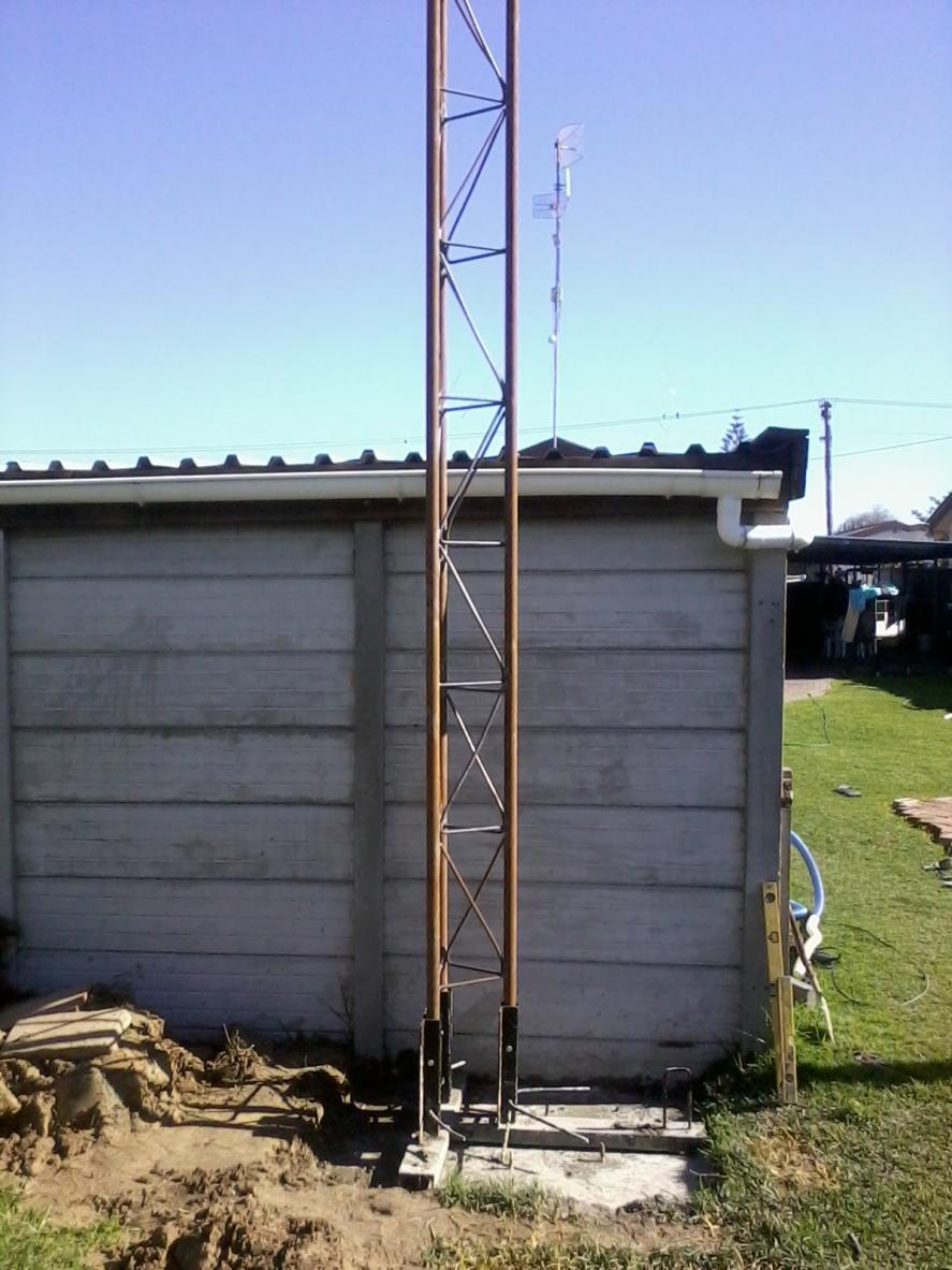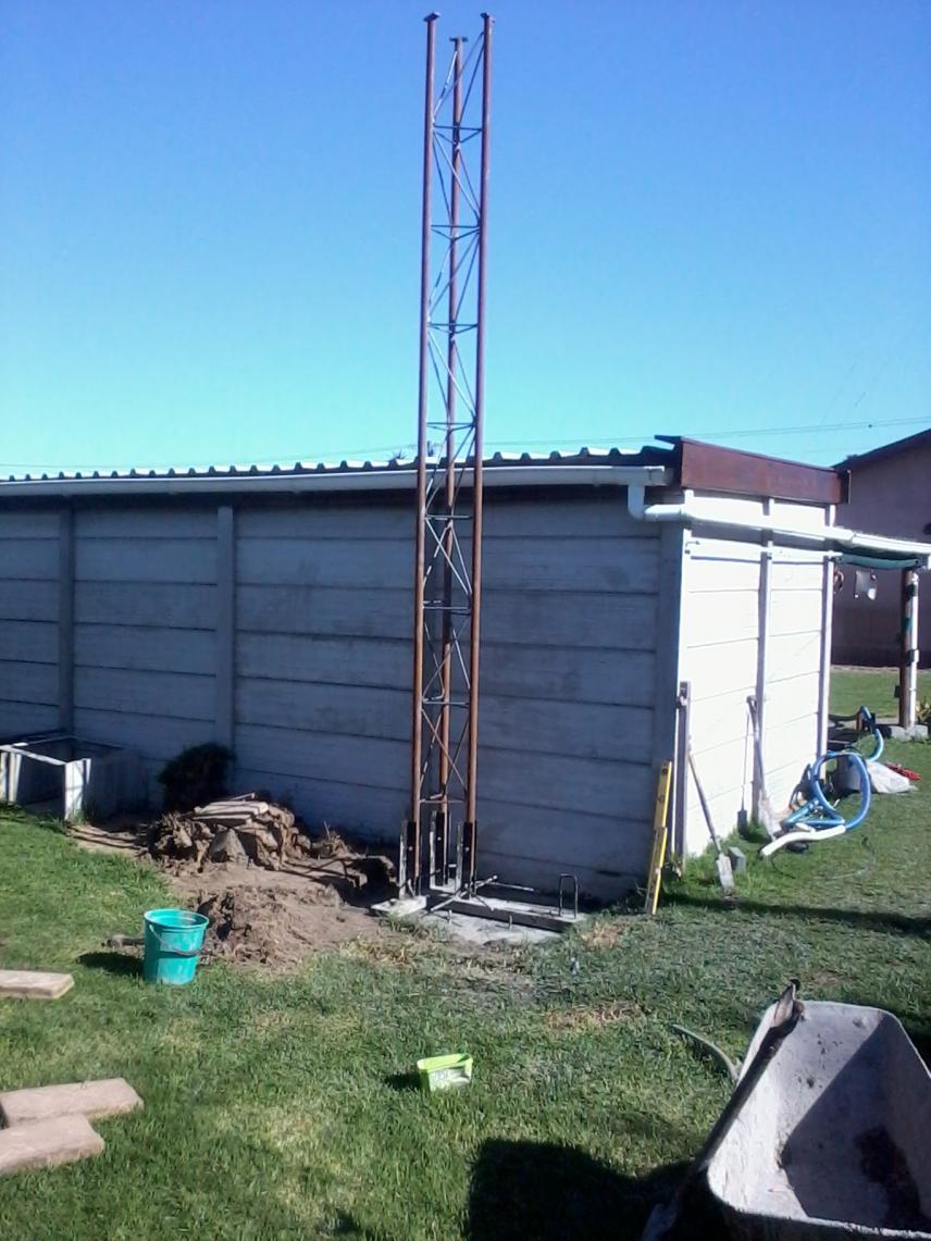 Yes we are busy with the stay wires, but the tower design has been inproved from the specs we got of the forum. We used 3mm poles instead of 2mm, 3 bolts per leg to secure it to the bass thats a total of 9 bolts, the concrete is 1meter in lenght 900 in width and 450 deep with a 2 part bass in the concrete. The arms that the legs bolt onto has been inproved with exstra steel and rond bar.