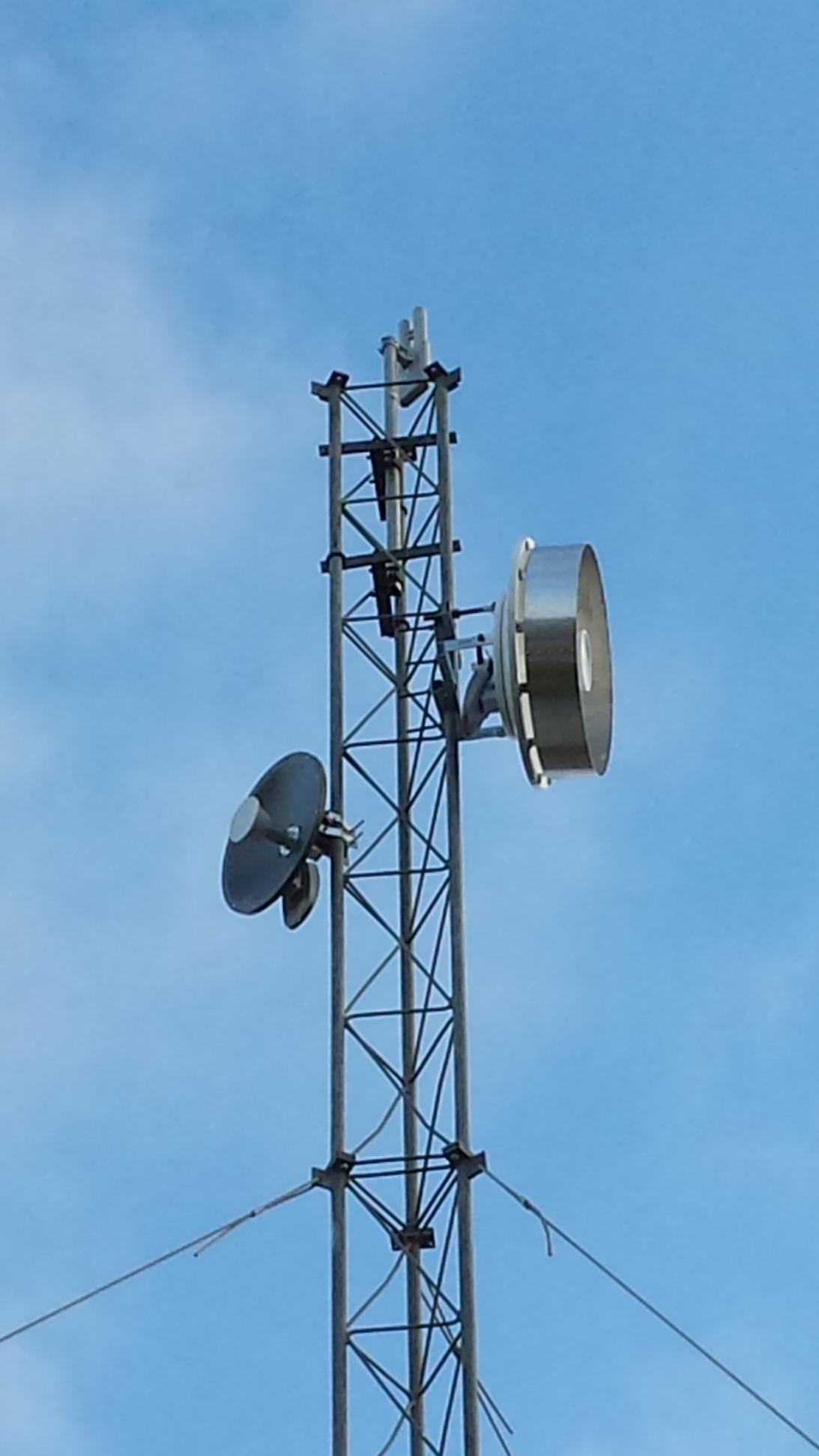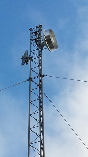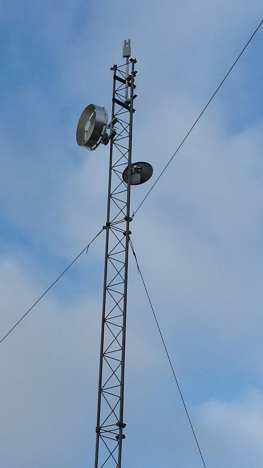When you put a 30dBi Dish at the top of a structure like this you must just think of the leverage that is created when it’s hit by a strong gust of wind. With the Razor tower you might find that the base will remain intact but the mast will kink if you don’t use stays. If you cant run stays now do to the location an engineer will be able to tell you exactly how much lateral load the structure can take.